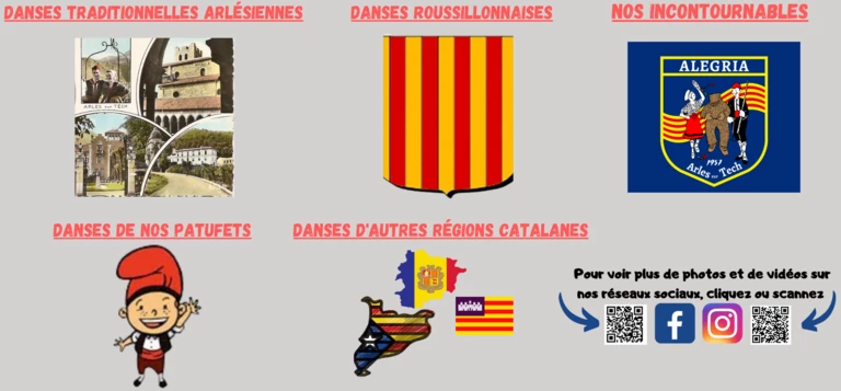Principalement composées de danses et musiques créées par un des membres Fondateur Camille Maler ou par le Célèbre Compositeur Roussillonais Max Havart, notre groupe dansera également sur des danses chorégraphiés par nos anciens danseurs ou conjointement avec la Fédération d'Esbart de Catalogne Nord,